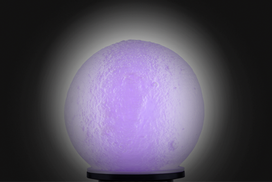 月球燈表面紋理凹凸不平,且細(xì)節(jié)設(shè)計繁復(fù),傳統(tǒng)工藝無法生產(chǎn)制造出高逼真程度的月球燈。而3D打印工藝通過對燈罩厚薄的精準(zhǔn)控制來改變透光率,從而展現(xiàn)出月球表面陰影和紋理的變化,最終成品無論從表面細(xì)膩程度還是燈罩透光率,都呈現(xiàn)出極為生動的效果。