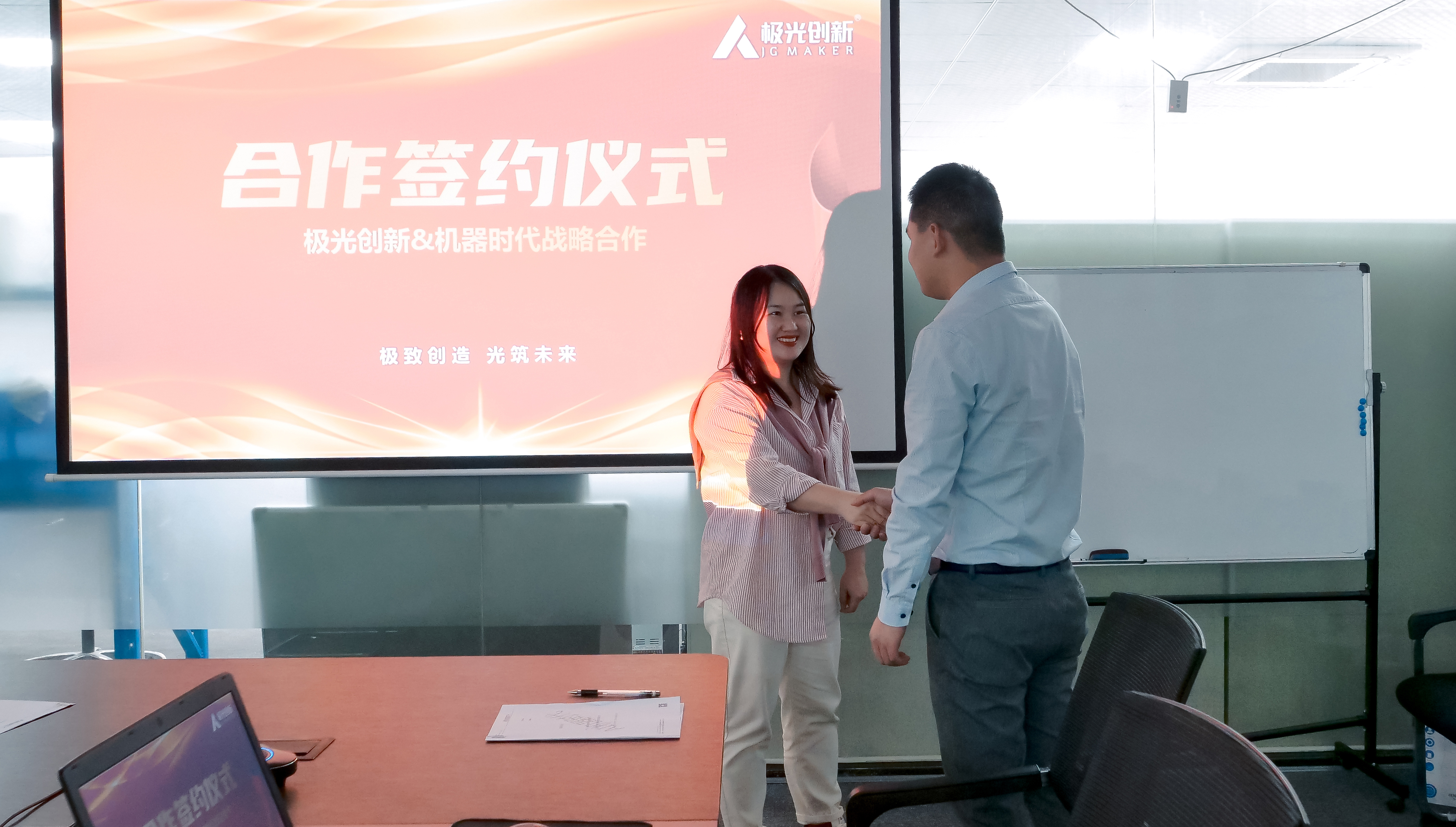 2023年3月2日,國內(nèi)專業(yè)3D打印機(jī)研發(fā)制造商,專注于3D打印技術(shù)開發(fā)及綜合應(yīng)用的企業(yè),深圳市極光創(chuàng)新科技股份有限公司 與 人工智能集成體驗(yàn)館機(jī)器時(shí)代,在深圳舉行簽約儀式,正式宣布達(dá)成深度合作。