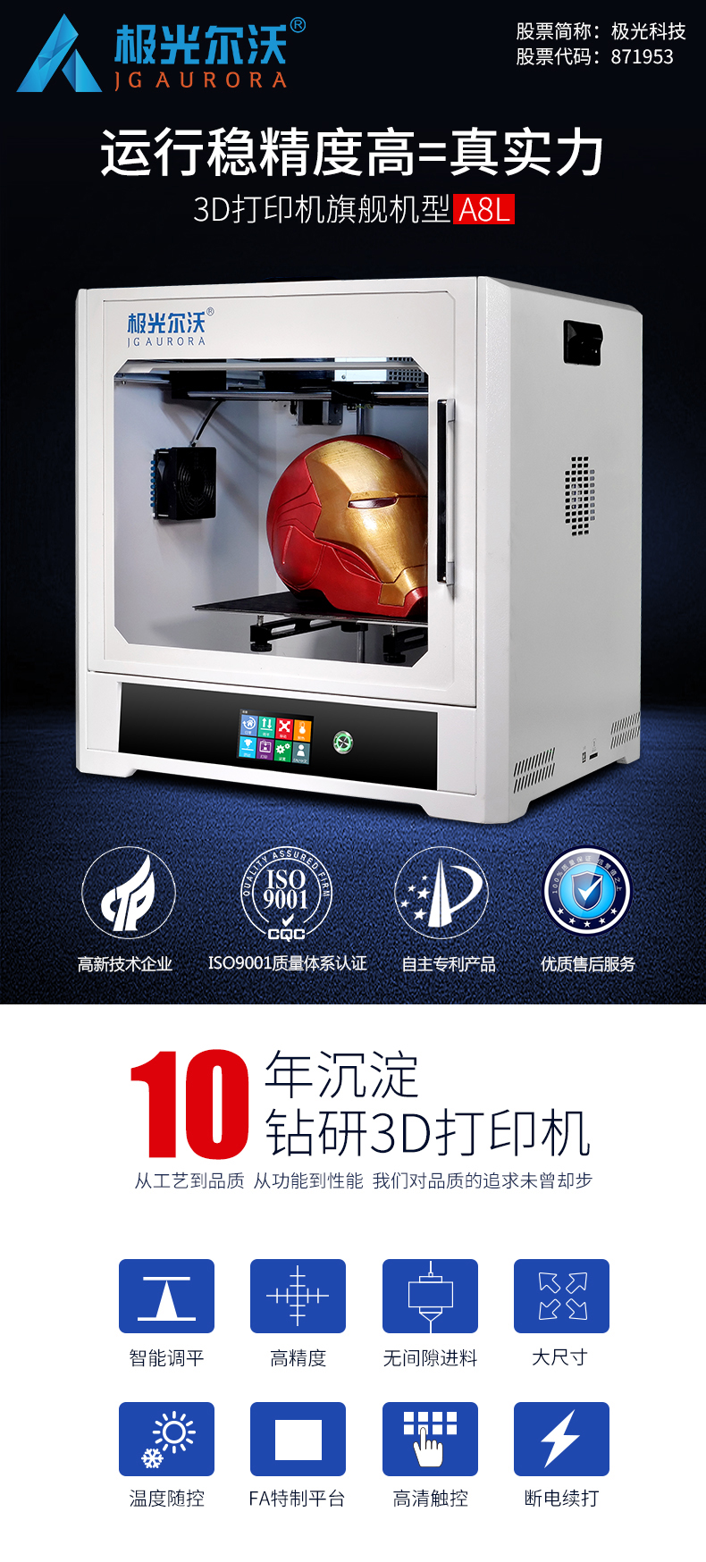 深圳市極光爾沃科技股份有限公司,中國(guó)3D打印機(jī)上市公司,由2009年英國(guó)留學(xué)創(chuàng)業(yè)人員發(fā)起創(chuàng)立的專業(yè)3D打印機(jī)“極光爾沃”