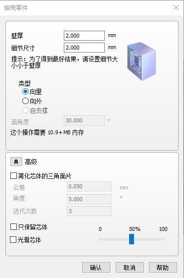 “向里”自然就是模型內部掏空,“向外”則是在模型外面包一層殼,用于制作模具等情況。