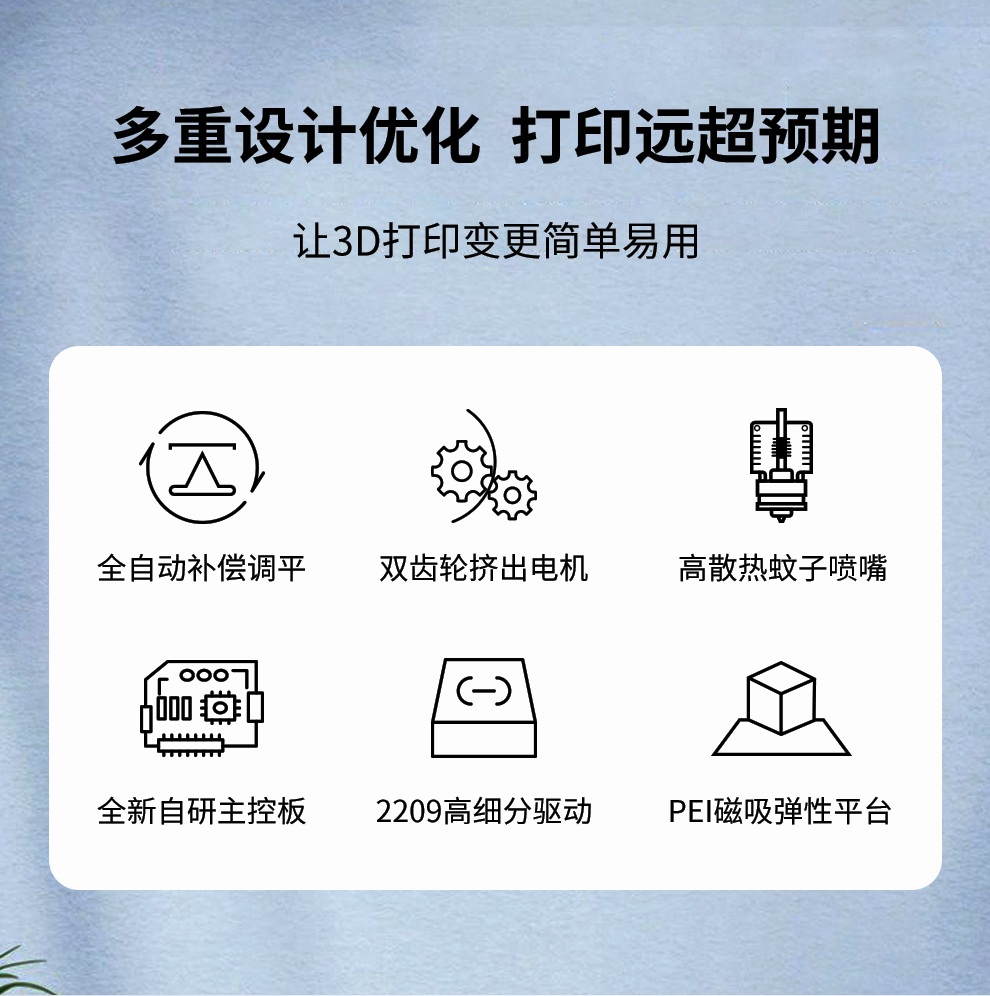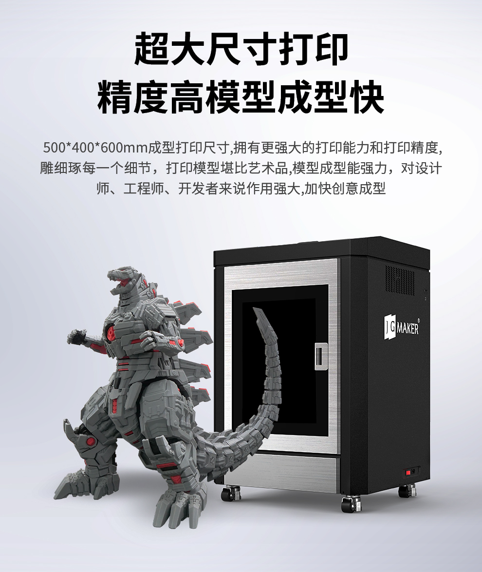 成型尺寸 500*400*600mm,擁有更強大的打印能力和打印精度,雕細琢每一個細節,全新升級,全自動補償調平,打印模型堪比藝術品