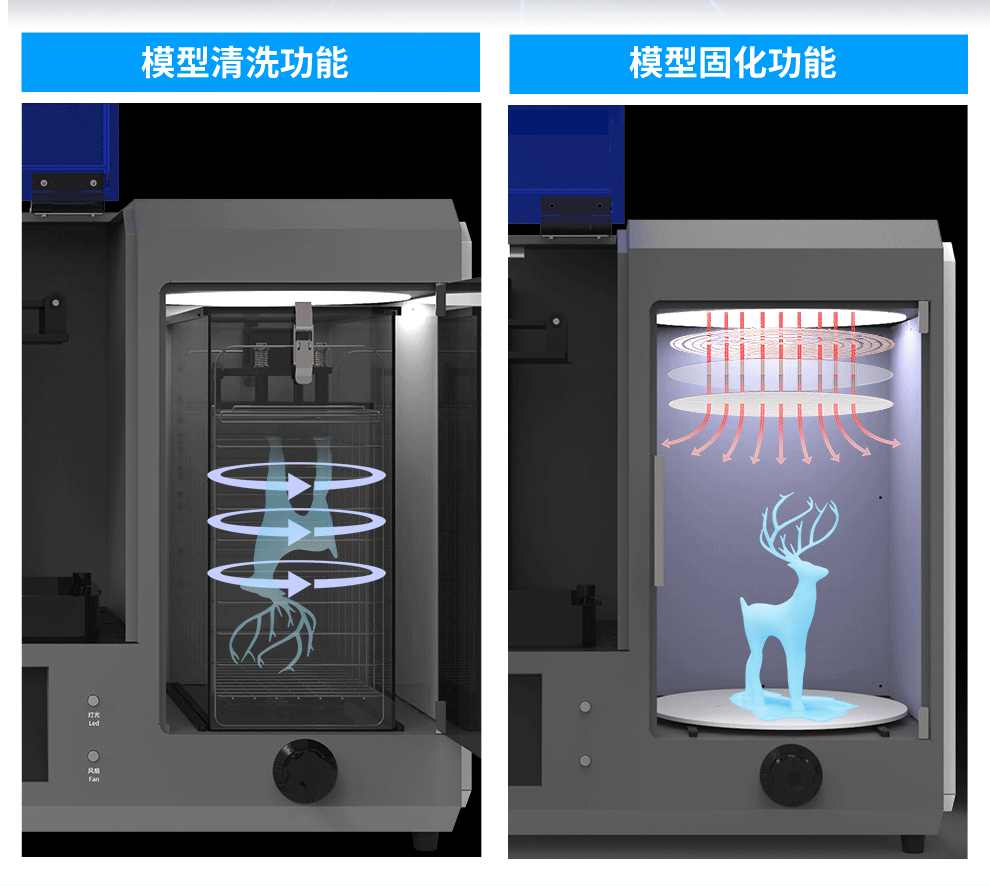 JG-L5 Pro 采用10.1寸6K透光固化屏,理論精度可高達0.045mm;增加打印、清洗、固化 三合一功能,內置攝像監控;對斷料檢測傳感器模塊做了升級,以及缺料會自動提示加料。